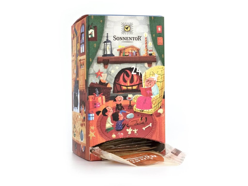 Adventní sada 24 bio koření a směsí v praktických sáčcích pro objevování chutí světa při svátečním vaření.