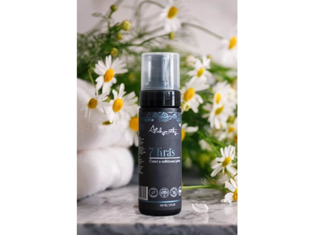 7 Krás kombinuje sedmikráskový hydrolát, jemné glykolipidy a Lactobacillus Ferment. Díky tomu čistí mimořádně jemně, ale účinně. Nenarušuje kožní bariéru, naopak pleť hydratuje a zklidňuje. Moderní biosurfaktanty - glykolipidy odstraňují nečistoty bez narušení komfortu pokožky. Glycerin, Betaine a Sodium Lactate podporují přirozenou hydrataci v průběhu čištění. Pullulan vytváří hebký tenký film, který zanechává pleť vypnutou a hladkou hned po použití. Vhodný na každodenní použití ráno i večer. Při velmi citlivé pleti doporučujeme otestovat s malým množstvím pěny.