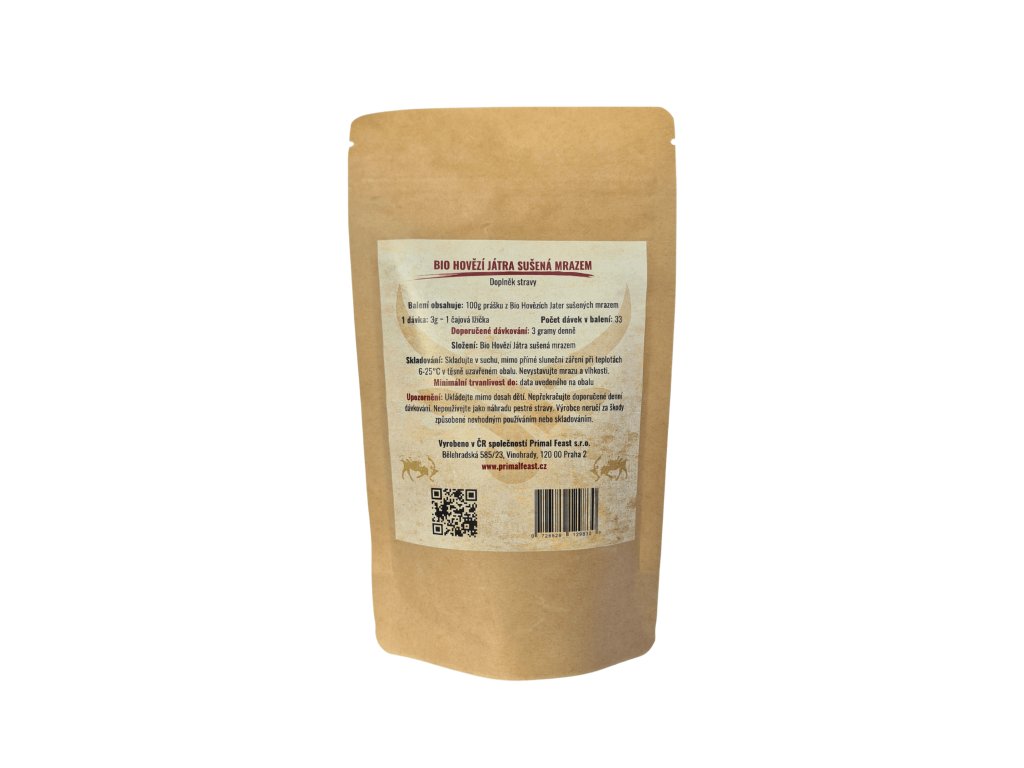 Lyofilizovaný prášek z BIO hovězích jater, která patří mezi nejkoncentrovanější zdroje vitamínů a minerálů v přírodě. Obsahují ve značném množství skupinu vitamínů B (B1, B2, B3, B5, B6, B9, B12), vitamín A, D, K2, měď, železo, selen, zinek a další živiny.