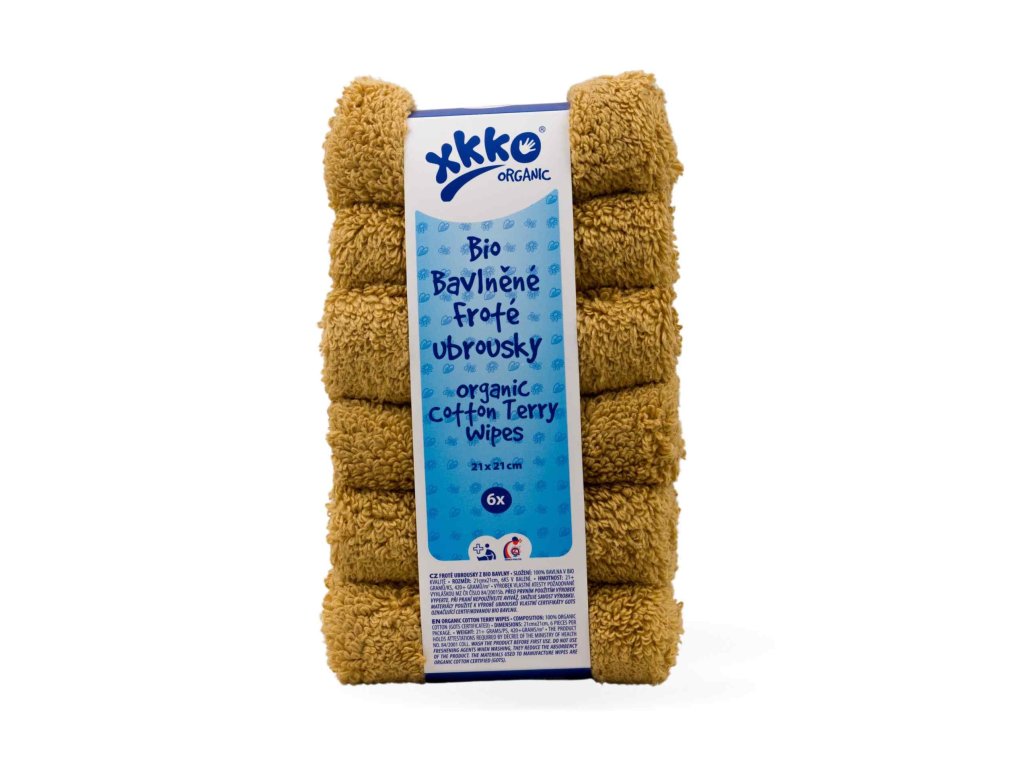BIO bavlněné ubrousky XKKO Organic jsou vyrobeny z mimořádně kvalitního "zero twisted" bavlněného froté s certifikátem GOTS. Ubrousky jsou velmi jemné a extrémně savé.