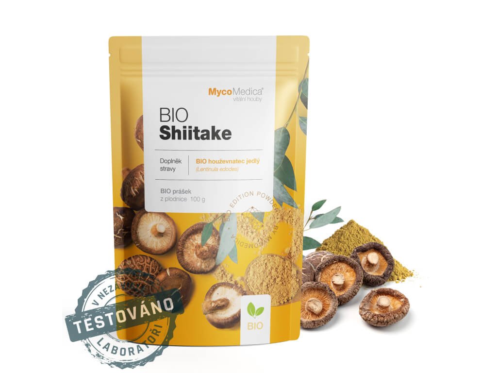 OBSAH BALENÍ: 100g BIO prášku z plodnice Lentinula edodes (biomasa/powder)