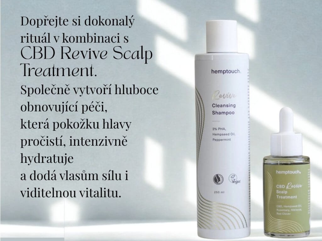 Tip: Pro ještě intenzivnější péči použijte před šamponem CBD Revive Scalp Treatment, který podpoří regeneraci a růst vlasů.