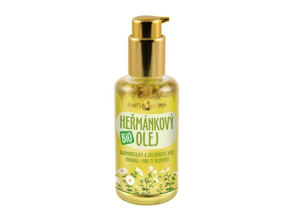 Dopřejte si šetrnou a voňavou péči s Bio Heřmánkovým olejem. Vzniká tradiční metodou pomalé macerace květů heřmánku lékařského ve směsi za studena lisovaných bio olejů – slunečnicového, jojobového a arganového. Díky šetrnému zpracování získává olej z heřmánku lékařského (Matricaria chamomilla) a nosných olejů cenné přírodní látky, jako je bisabolol, který pomáhá zmírňovat zarudnutí a podráždění, a také důležité antioxidanty. Olej je vhodný pro každodenní péči o citlivou, suchou, ekzematickou a aknóznípleť, ale také o pokožku miminek.