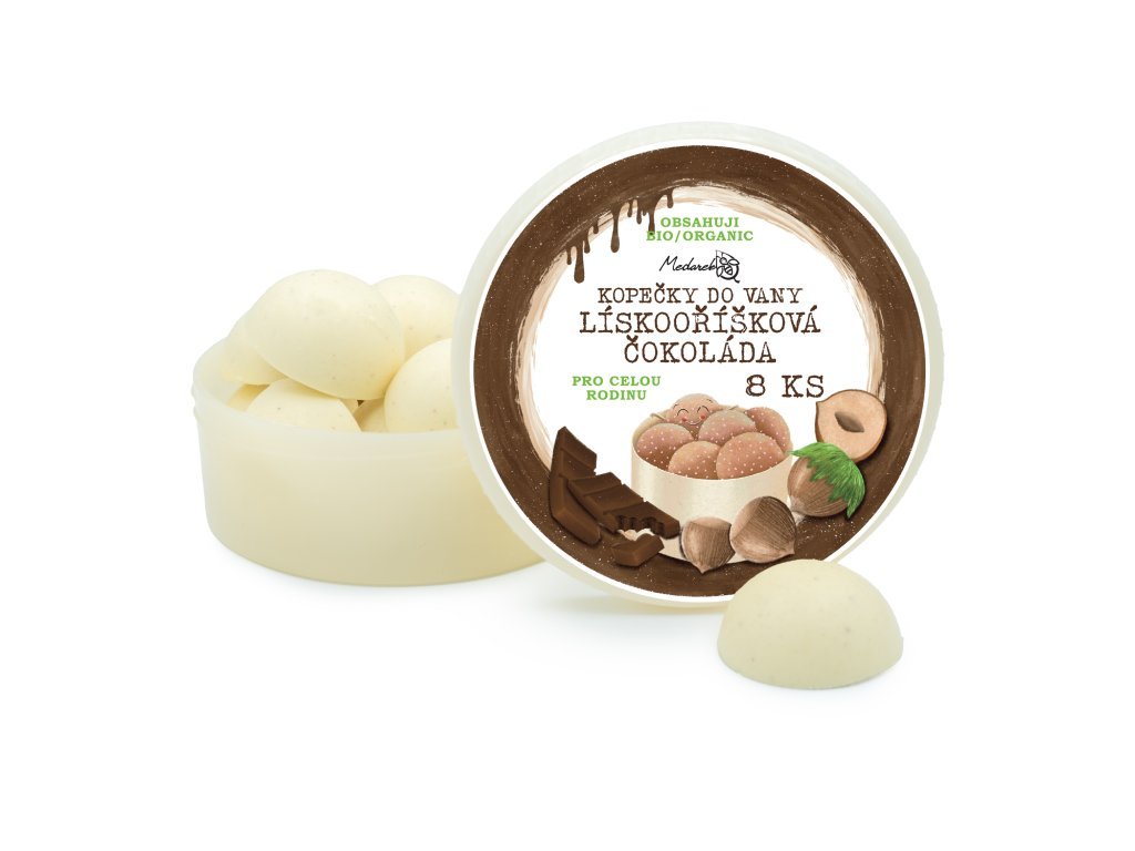 Základ kopečků tvoří bio kakaové máslo a bio lískooříškový olej. Obě tyto složky krásně promastí, provoní a pohladí celé tělo. Dělají kůži hebkou, pružnou a zabraňují ztrátě vlhkosti. Kakaové máslo je bohaté na esenciální mastné kyseliny jako je kyselina olejová, stearová a palmitová, které pomáhají kůži hloubkově vyživovat. Máslo má také regenerační schopnosti, zvláčňuje a obnovuje popraskanou nebo vysušenou kůži těla. Lískooříškový olej obsahuje vysoké množství vitamínu E, díky kterému kůži chrání proti oxidačnímu stresu. Stejně jako máslo ji zanechává hebkou, voňavou, uzamyká v ní vlhkost.