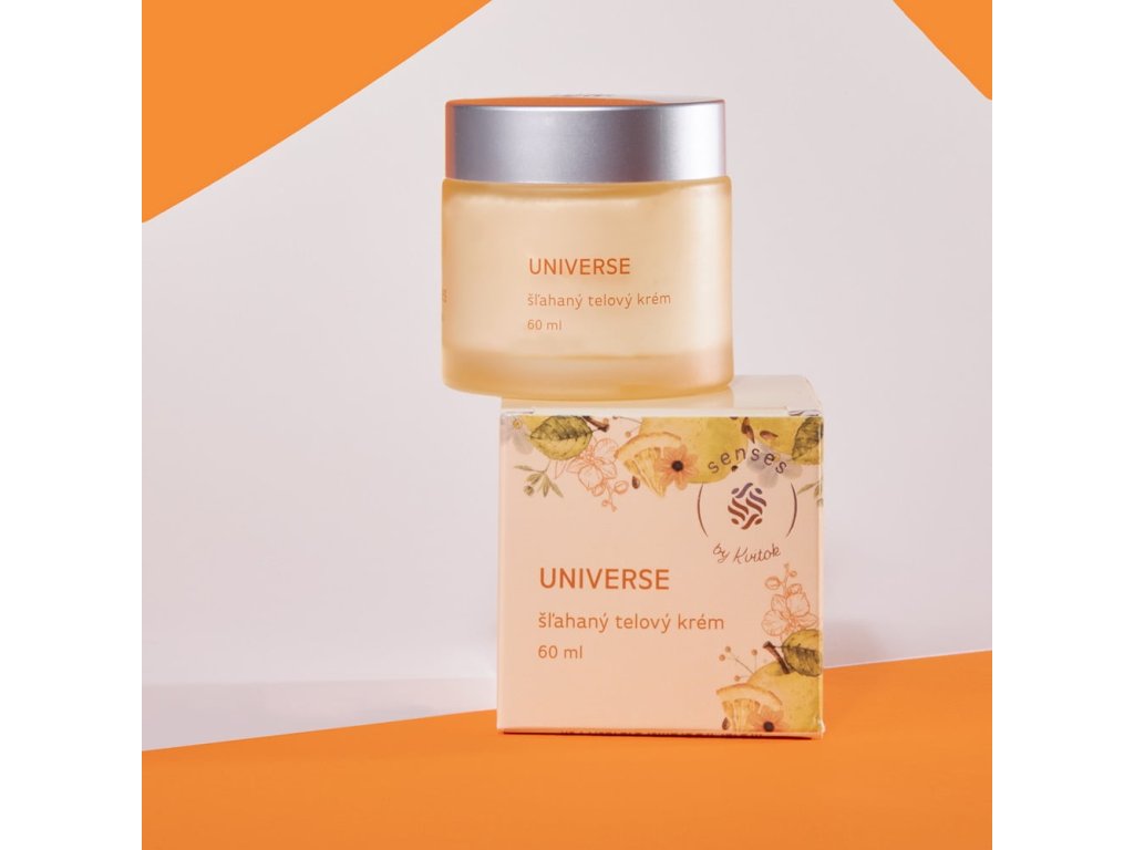 Krém Universe s bambuckým máslem, mandlovým a avokádovým olejem pečuje o suchou pokožku. Vůně citrusů, květin a dřeva osvěží tělo i smysly.