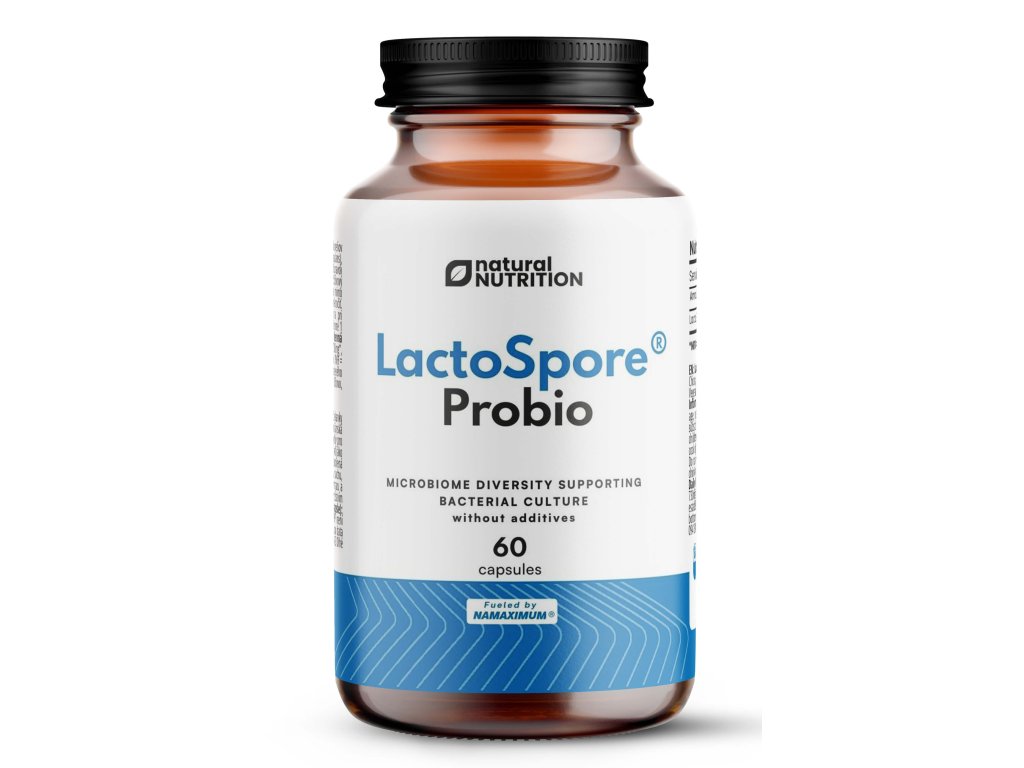 Další klíčovou složkou je LactoSpore® – patentovaná forma bakterie Bacillus coagulans (MTCC 5856). Patří mezi spórující bakterie, což znamená, že vytváří ochranný obal umožňující přežití v náročných podmínkách. Díky tomu dokáže odolat výrobnímu procesu i kyselému prostředí žaludku a dostává se do střeva v aktivní formě.
