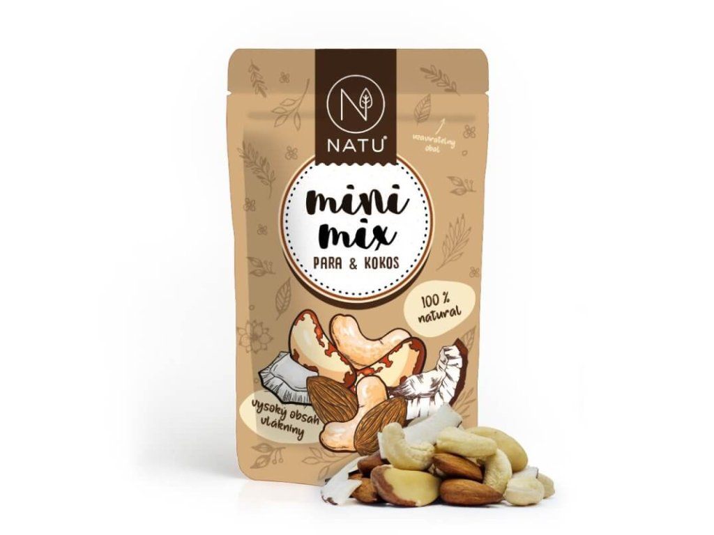Mini mix para ořechy, mandle, kešu a kokos. Malé balení, velká porce energie a vlákniny. Zdravá svačina do kapsy kdykoliv potřebujete.