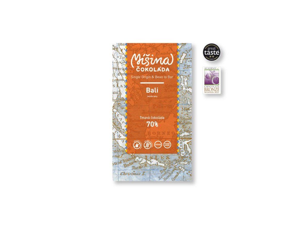 Tmavá čokoláda z Bali s tóny medu, manga a ořechů. Oceněná 2 hvězdami Great Taste a bronzem Academy of Chocolate Awards 2021.