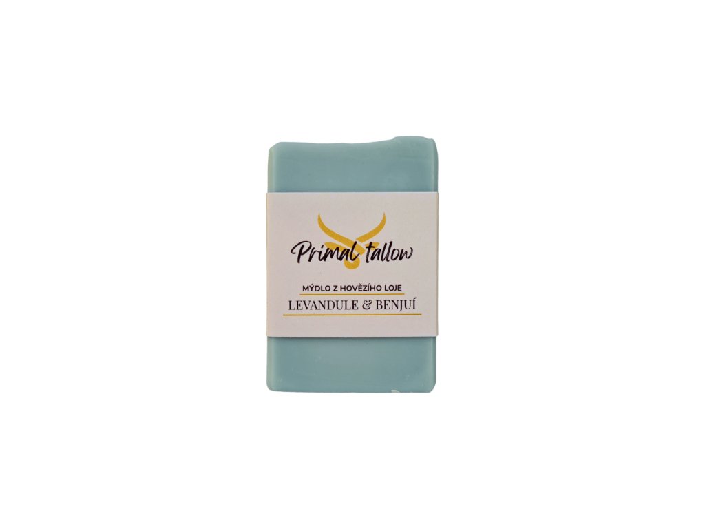 Přírodní mýdlo z bio hovězího loje s levandulí a benjuí. Tradiční a šetrné. Grass-Fed lůj z českých farem a čisté složení.