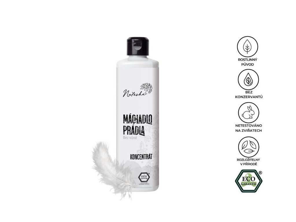 Máchadlo odstraňuje zbytky pracích prostředků, chrání pokožku i barvy prádla, je 100% biologicky odbouratelné a šetrné k přírodě.