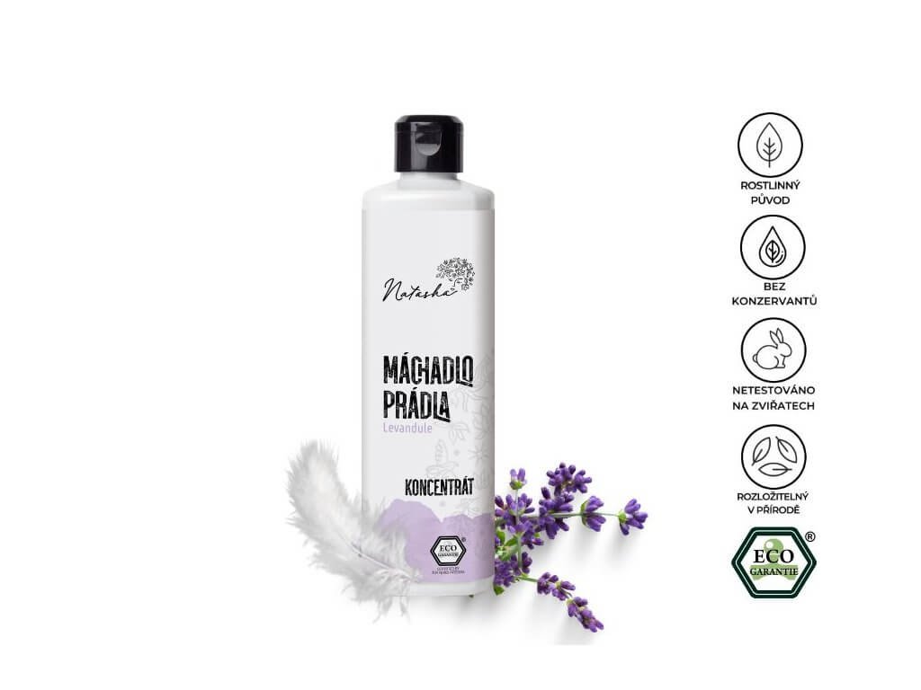 Přírodní máchadlo s kyselinou citronovou a levandulí neutralizuje zbytky pracích prostředků, chrání barvy, změkčuje prádlo a je šetrné k pokožce i přírodě.