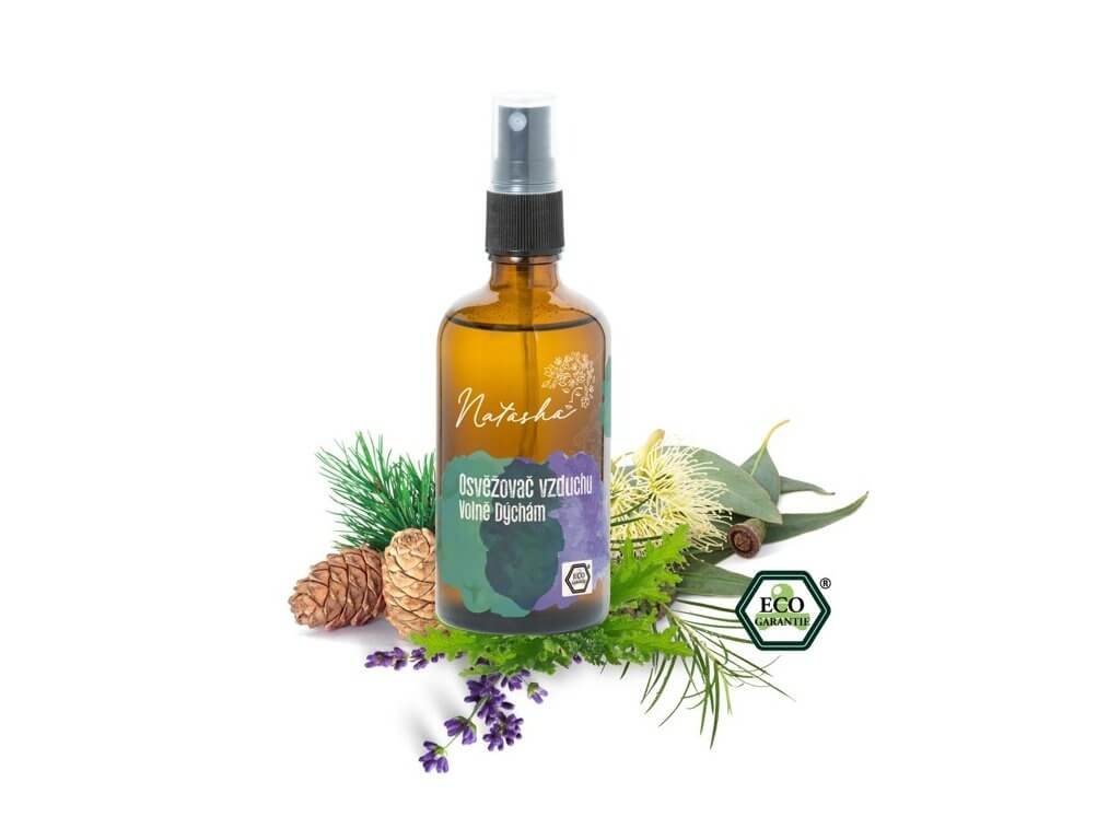 Osvěžovač vzduchu Volně dýchám s bio oleji z eukalyptu, borovice a citronely uvolňuje dýchací cesty, čistí vzduch a přináší úlevu při nachlazení.