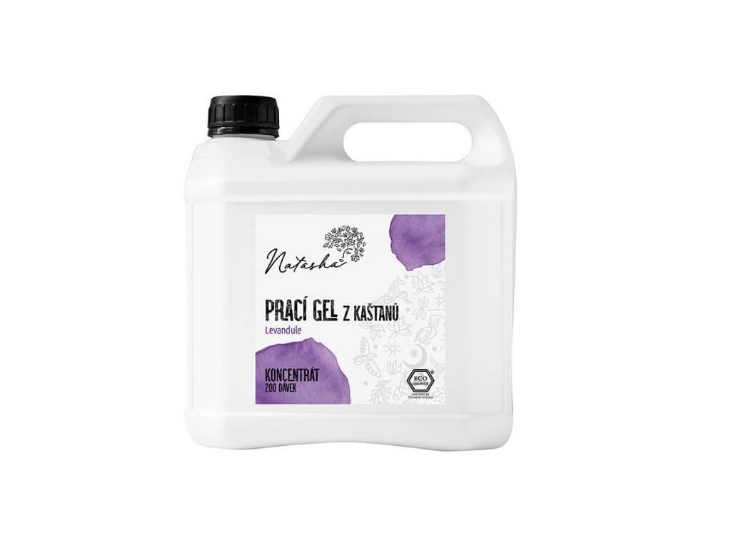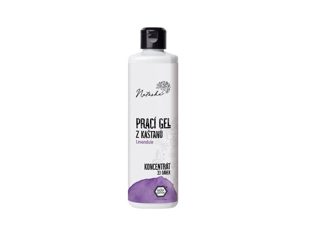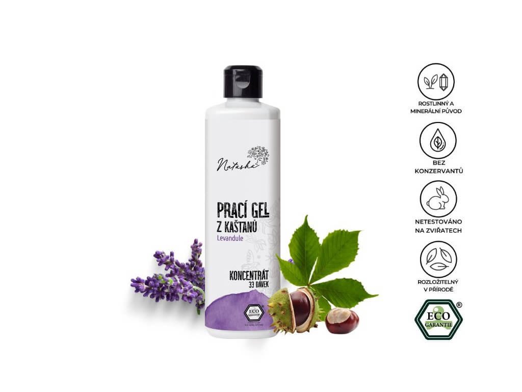 Přírodní koncentrovaný prací gel z kaštanů s levandulí. Účinný, ekologický, šetrný k pokožce i prádlu.