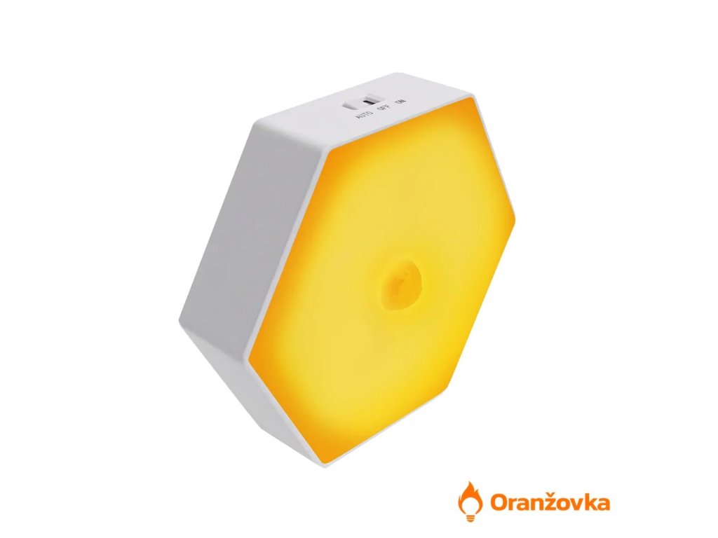 Noční světlo ORANŽOVKA má dva senzory. Tím prvním je pohybový snímač, který plní funkci zapínání a vypínání světla dle pohybu. Druhým je pak soumrakové čidlo, které snímá intenzitu osvětlení v místnosti. Pokud svítidlo nastavíte do módu „AUTO“, pak je soumrakový senzor stále aktivní a vždy bude reagovat na okolní světelné podmínky. Světlo si tak samo vyhodnotí, že je noc (nebo večer) a má svítit. Pokud tedy bude venku tma a zároveň nebude v dané místnosti rozsvíceno hlavní stropní osvětlení, noční světlo se při zaznamenání pohybu v místnosti automaticky rozsvítí.