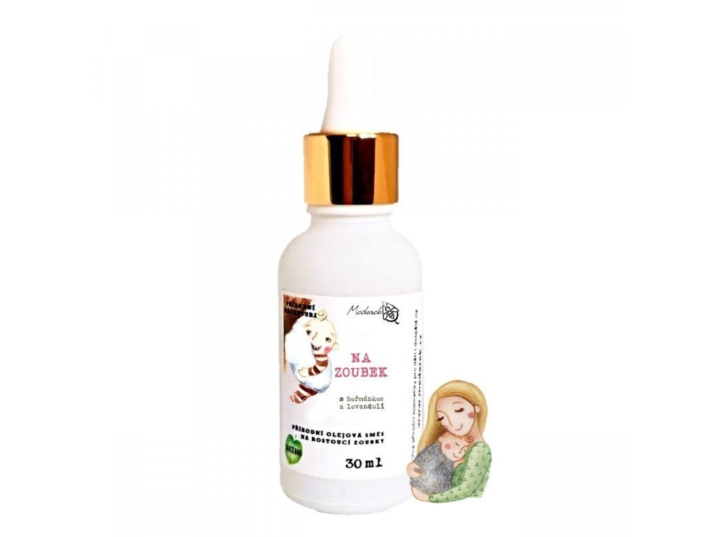 Směs olejů v bio kvalitě pomáhá ulevit od bolesti při růstu zoubků.