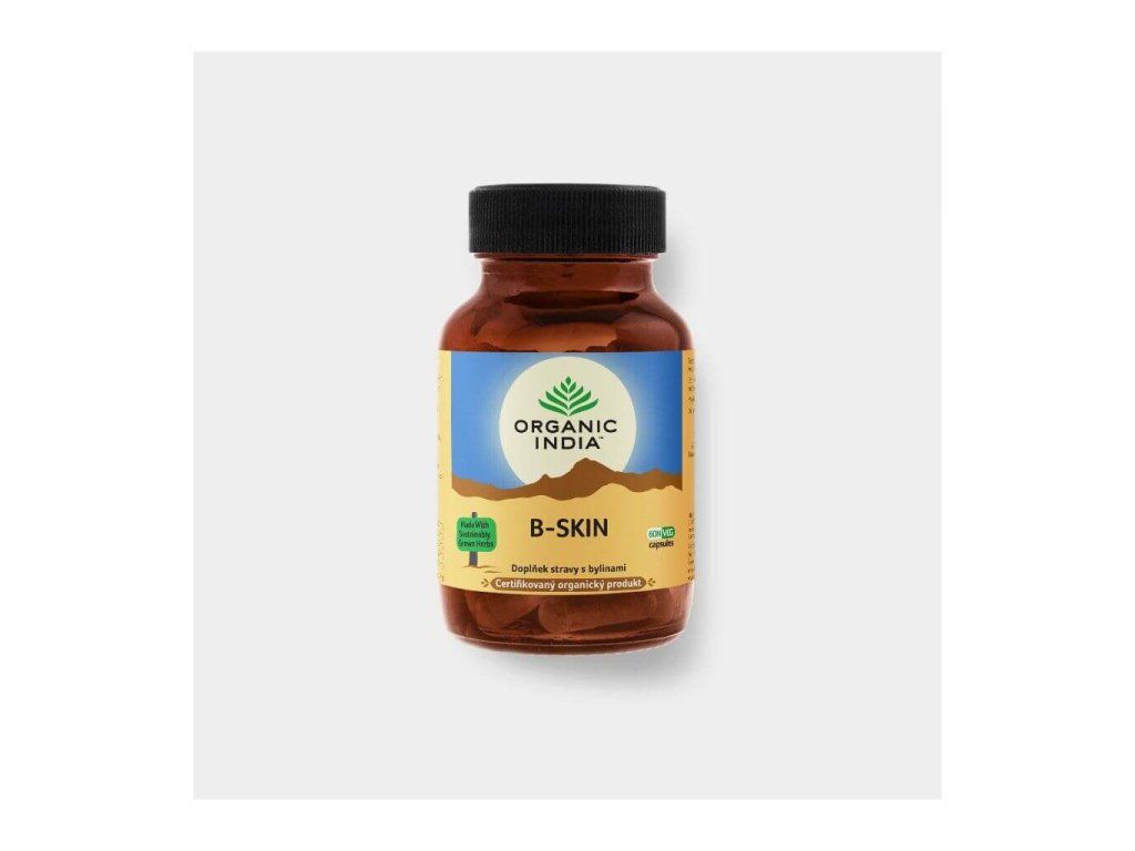 B-skin podporuje zdravou pokožku a játra díky ájurvédské směsi: Tulsi, křídlok santalový, mořena srdčitá, kurkuma a chebule srdčitá.