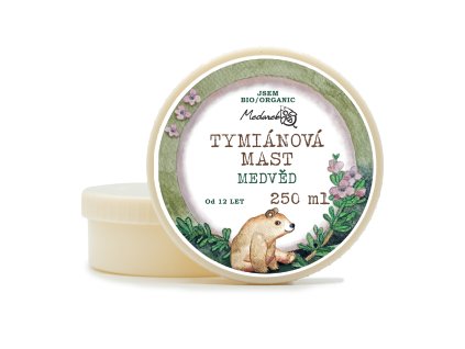 exp. 11/25 Tymiánová mast na podporu při nachlazení pro děti od 12 let a dospělé. Olej z černého kmínu, mangové máslo, tymián linalool, borovice, kadidlo, tangerinka.
