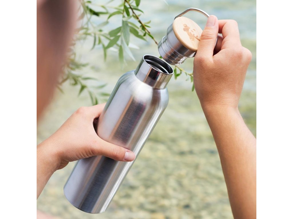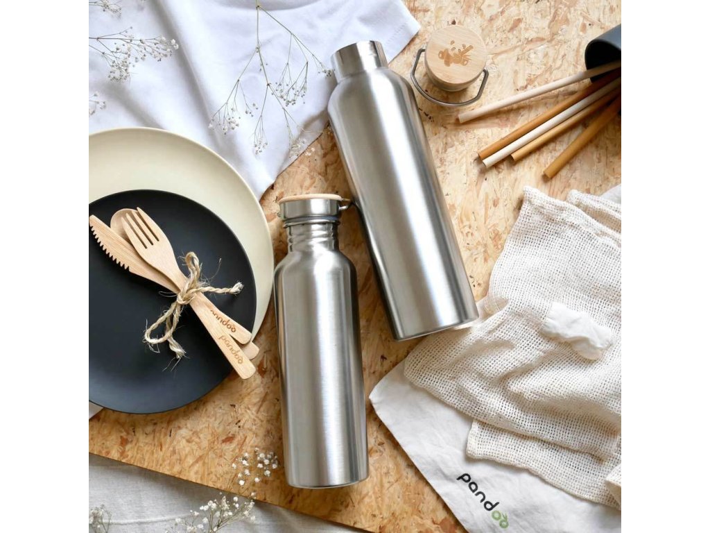 Pandoo kvalitní nerezová lahev na vodu je výbornou alternativou za plastové lahve. Lahev je opatřena bambusovým víčkem se silikonovým těsněním bez BPA.