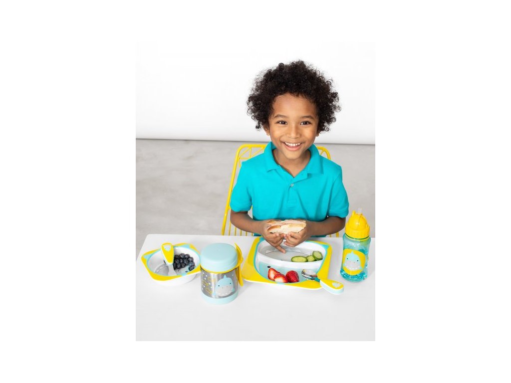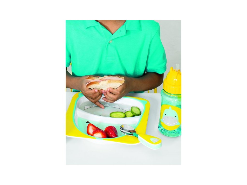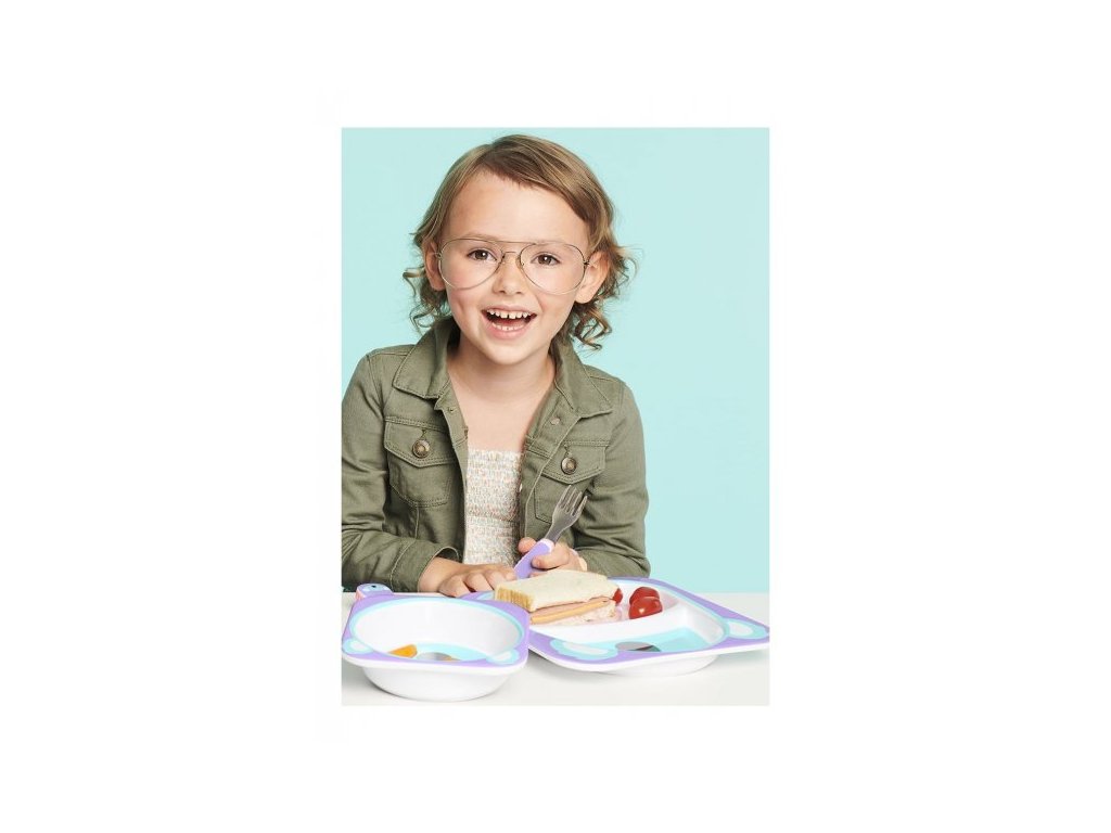 Přátelské motivy pro radost z jídla! Tento roztomilý set má měkké boční úchyty, takže se snadno drží i v maličkých ručičkách.Vyrobeno z nerezu. 12+ měsíců.