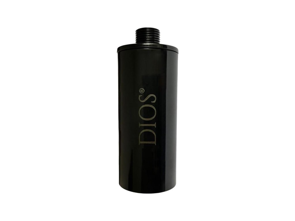 Sprchový filtr Dios se vyznačuje 3-stupňovou filtrací: mechanické nečistoty zachycují textilní přepážky, další filtrační hmoty (granule slitiny kovů, keramické kuličky) jsou zaměřeny na odstranění chloru, bakterií a tvrdosti a vzájemně se vhodně doplňují. Aktivní uhlí ve sprchovém filtru zásadně nepoužíváme, protože na rozdíl od studené vody se při použití aktivního uhlí pro teplou vodu do vody uvolňují nežádoucí škodliviny. Nově obsahuje sprchový filtr DIOS nejen granule slitiny kovů, ale také keramické dechlorační kuličky s podstatně vyšší účinností. Jsou vyrobeny z vysoce kvalitního siřičitanu vápenatého, snižují povrchové napětí vody, odstraní nepříjemnou chuť, zápach a přeměňují okamžitě chlor na neškodnou sůl. Účinnost je více než 95 %.To umožňuje mimo jiné i zefektivnění pěnění mýdla a šamponů.