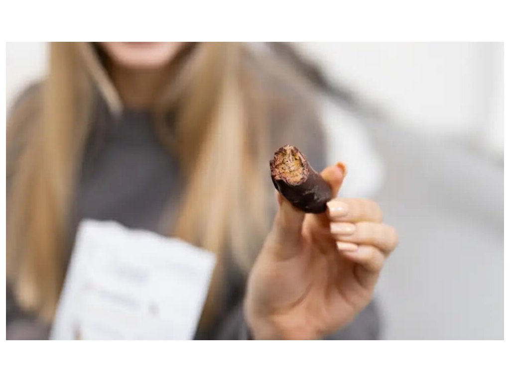 Z 80 % je tvoří sušený banán, který si zachovává přirozenou sladkost i vláčnost. Každý kus je obalený do řemeslné čokolády vyrobené z kakaových bobů, třtinové šťávy a kakaového másla – bez palmového oleje, bez náhražek a bez zbytečností. Díky tomu chutnají opravdově, přirozeně sladce a skutečně čokoládově.