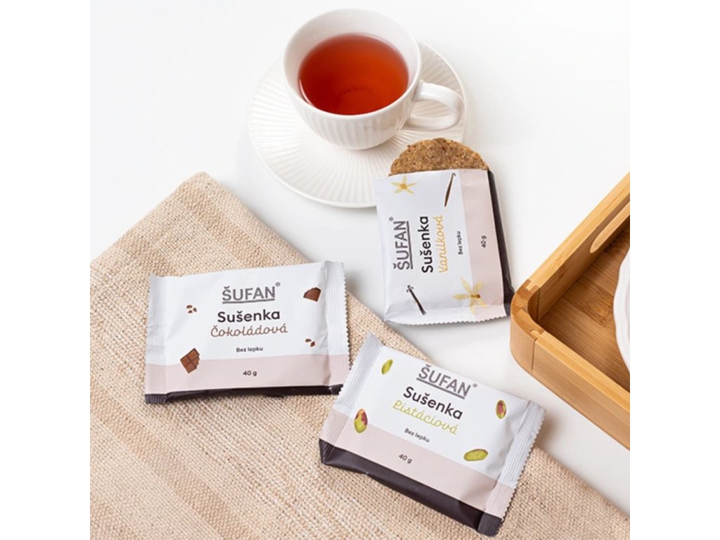 Co by to bylo za pistáciovou sušenku bez pistáciového másla! V ŠUFANu ji připravili z másla vyrobeného z íránských pistácií, které si sami šetrně praží. Kromě másla do těsta přidali i nadrobno nasekané pistácie pro extra křupavost a osladili ji trochou čekankového sirupu. A ta krásná barva? Tu mají na svědomí nejen pistácie, ale i špetka kvalitního matcha prášku.