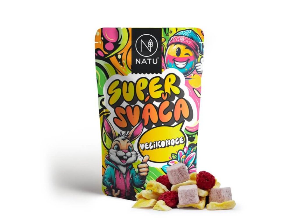 Velikonoce už klepou na dveře – a s nimi přichází i limitovaná edice Velikonoční Super sváči! Veselý sáček v jarním kabátku s cool zajíčkem ukrývá ovocné dobroty plné přírodní energie, které dětem dodají sílu na koledování, hraní i každodenní dobrodružství. Se Super sváčou po ruce zvládnou školní úkoly, matematické kvízy i odpolední výzvy levou zadní.