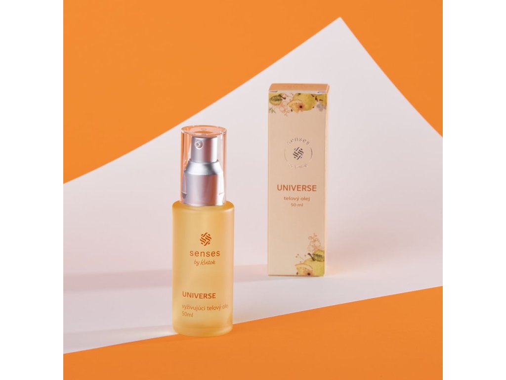Suchý tělový olej Universe z kolekce SENSES by KVITOK® je oblíbeným produktem přírodní kosmetiky, který potěší nejen pokožku, ale i smysly. Jeho lehká textura se rychle vstřebává a nezanechává mastný pocit, díky čemuž je pokožka po použití sametově jemná. Základ oleje tvoří lehké rostlinné oleje bohaté na antioxidanty a polonenasycené mastné kyseliny, zejména kyselinu linolovou s nízkým obsahem kyseliny olejové.