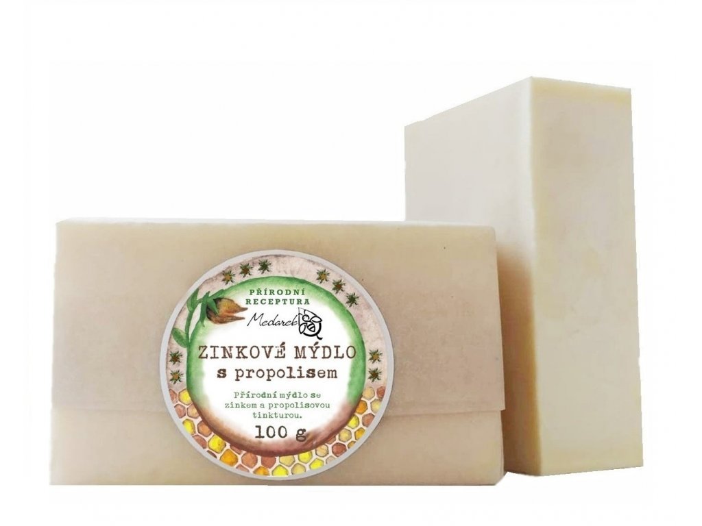 Zinkové mýdlo obohacené o propolis vhodné pro péči o pokožku se sklonem k červenání. Vhodné i pro děti od narození.